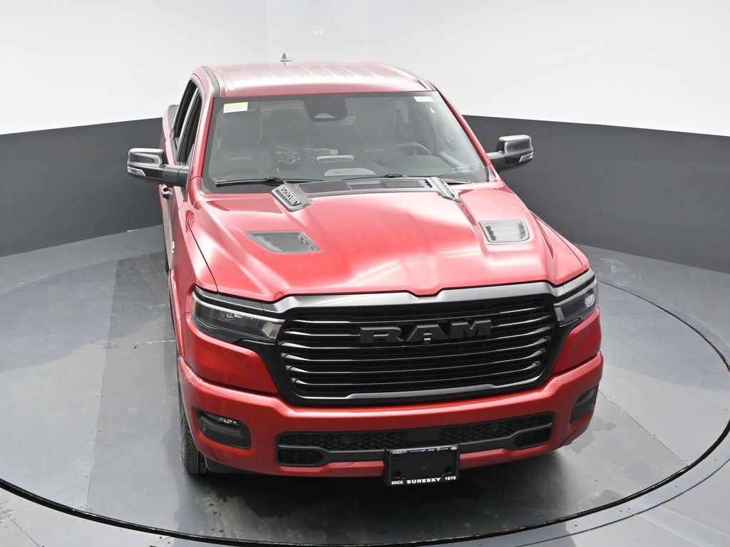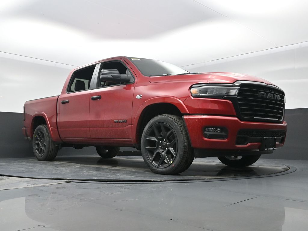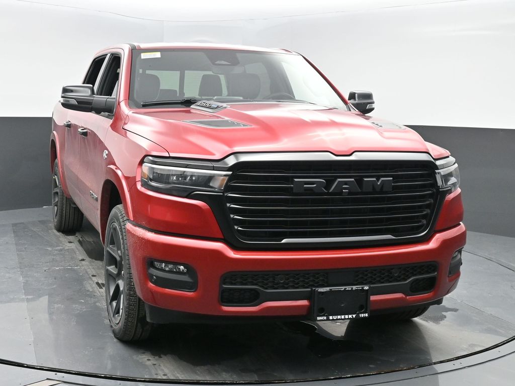 Quick Order Package 27H Laramie. Laramie Level 2 Equipment Group: SiriusXM Radio Service; USB Host Flip; Rain Sensitive Windshield Wipers; 14.4 Touchscreen Display; Integrated Center Stack Radio; Front Passenger Interactive Display; Integrated Voice Command with Bluetooth; Connectivity - US/Canada; Uconnect 5 Nav with 14.4 Display; GPS Navigation; 4G LTE Wi-Fi Hot Spot; Harman/kardon 19 Speaker Premium Sound; SiriusXM with 360L; Connected Travel and Traffic Services; Cluster 12 TFT Color Display; Power Tailgate. Night Edition: Black Headlamp Bezels; Auto Power-Folding Mirrors; 22 X 9 Forged Aluminum Wheels; Exterior Mirrors with Heating Element; Proximity Approach/departure Lamps; Auto Dim Exterior Driver Mirror; Anti-Spin Differential Rear Axle; Accent Color Door Handles; Black Interior Accents; Body Color Front Bumper; Grille Surround 3 Black Texture 2 Black; Body Color Rear Bumper with Step Pads; RAM Grille Badge - Black; Black Painted Exterior Mirrors Caps; Exterior Mirrors Approach Lamps; Accent Color Premium Power Mirrors; Exterior Mirrors with Supplemental Signals; Sport Performance Hood; Exterior Mirrors Courtesy Lamps; Black Exterior Truck Badging; Accent Color Tailgate Handle; Exterior Mirrors with Memory; Dual Exhaust with Black Tips; Convex Wide-Angle Exterior Mirror Insert; Black Tail Lamp Bezels. 22 X 9 Forged Aluminum Wheels. Anti-Spin Differential Rear Axle. Molten Red Pearlcoat. MOPAR Front and Rear Rubber Floor Mats. 3.92 Rear Axle Ratio. Rear Wheelhouse Liners. **Equipment listed is based on original vehicle build and subject to change. Please confirm the accuracy of the included equipment by calling the dealer prior to purchase.**
