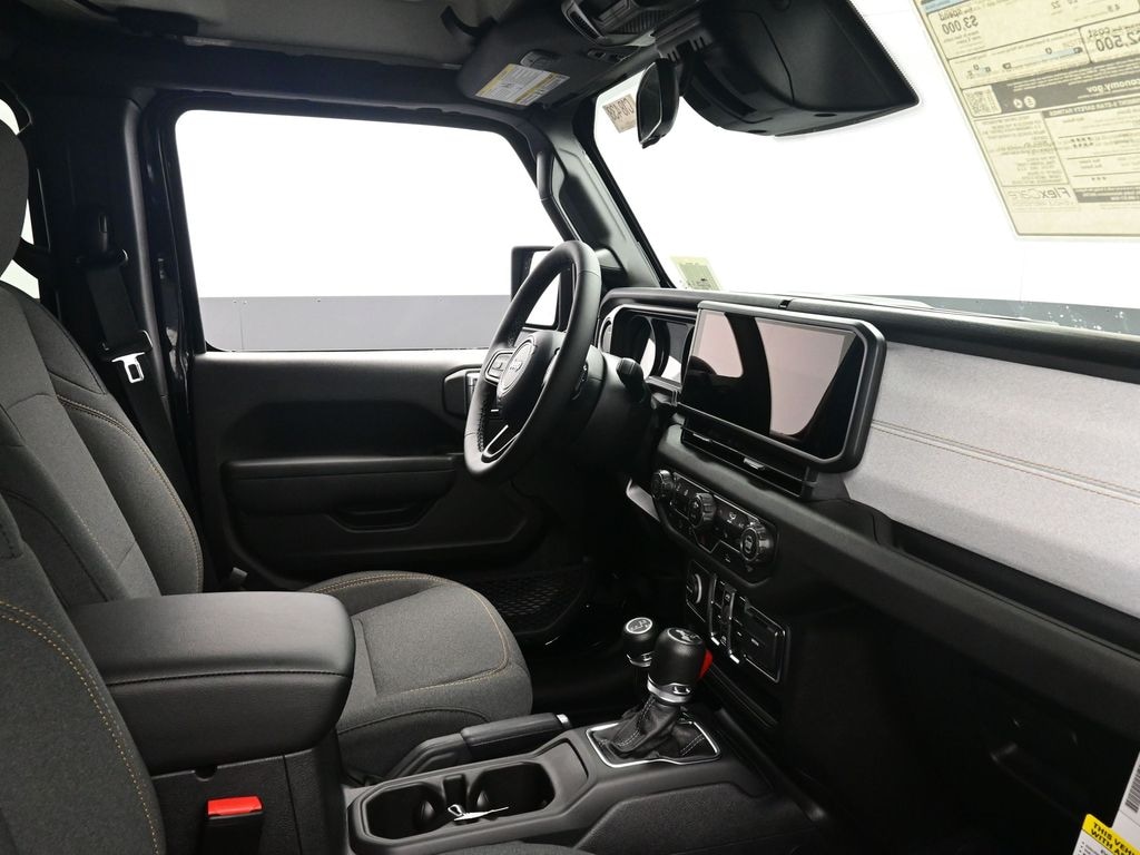 Apple CarPlay: Seamless smartphone integration for this Jeep Wrangler - stay connected and entertained on the go! It features a hands-free Bluetooth phone system. This vehicle has auto-adjust speed for safe following. An off-road package is equipped on it. See what's behind you with the back up camera on this mid-size suv. This model offers Automatic Climate Control for personalized comfort. Start it from inside with remote start. This vehicle comes equipped with Android Auto for seamless smartphone integration on the road. This 2025 Jeep Wrangler 's Forward Collision Warning system alerts the driver to potential front-end collisions, enhancing safety. Keep your hands warm all winter with a heated steering wheel in this model . This model has a 4 Cyl, 2.0L high output engine. Maintaining a stable interior temperature in it is easy with the climate control system. This vehicle has four wheel drive capabilities. This unit has an elegant black exterior finish.