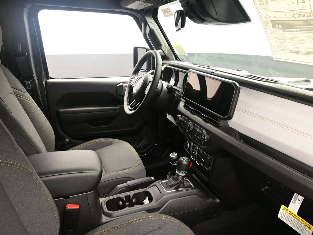 2025 Jeep Wrangler Sport S â" 4WD, 2.0L 4-cylinder Ready for daily commutes and offâ'road adventures, this 2025 Jeep Wrangler Sport S pairs rugged capability with modern convenience. Powered by a responsive 2.0L turbocharged 4â'cylinder engine and efficient 4WD, it delivers confident performance whether youâre navigating city streets or rough trails. The interior balances durable materials with thoughtful features designed for comfort and control. Automatic climate control maintains a consistent cabin temperature, while the heated steering wheel adds warmth and comfort on chilly mornings. Remote start provides the convenience of warming or cooling the vehicle before you step inside. Advanced safety systems help you stay aware and relaxed on longer drives. Forward Collision Warning alerts you to potential frontal impacts, and Adaptive Cruise Control maintains a safe, consistent distance from the vehicle ahead for effortless highway cruising. Practical touches include intuitive controls and durable seating surfaces built for life on the go. With its iconic silhouette, functional roof options, and a suite of driver assists, this Jeep Wrangler Sport S is ideal for buyers seeking a versatile SUV that confidently transitions from urban practicalities to weekend exploration. Schedule a test drive to experience its blend of capability, comfort, and modern safety technology.