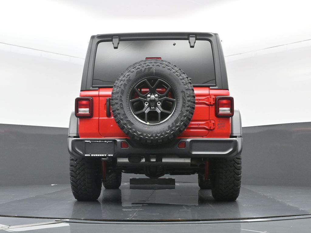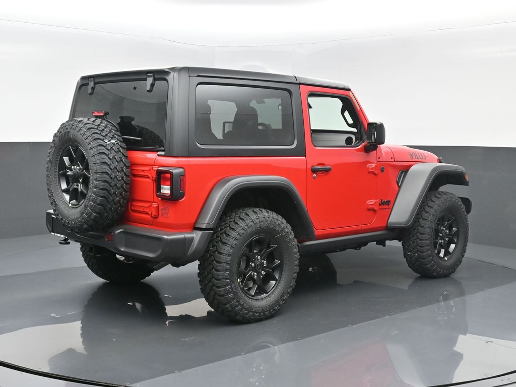 Convenience Group: Emergency/Assistance Call; 2-Door Passive Entry. Front Door Locks; Remote Start System; Cluster 7.0 TFT Color Display; Universal Garage Door Opener; Heated Front Seats; Air Conditioning W/Auto Temp Control; Heated Steering Wheel; Air Filtering. Quick Order Package 22W Willys: 7 & 4 Pin Wiring Harness; Conventional Differential Front Axle; 4-Wheel Drive Swing Gate Decal; Black Grille; MOPAR All-Weather Floor Mats; Injection Molded Black Rear Bumper; Dana M210 Wide HD Tube Front Axle; Daytime Running Lamps LED Accents; Front LED Fog Lamps; LED Premium Reflector Headlamps; 5. 400 lbs GVWR; E-Locker Rear Axle; Corning Gorilla Glass; Security Alarm; 4.10 Rear Axle Ratio; Class II Receiver Hitch; Mold In Color Bumper W/Gloss Black; Advanced Brake Assist; Willy's Suspension; LT285/70R17C BSW Mud Terrain Tires; Automatic Headlamps; Deep Tint Sunscreen Windows; Off-Road Plus Mode; 17 X 7.5 Painted Black Wheels; Willys Hood Decal; Full Speed Forward Collision Warning Plus; Rock Protection Sill Rails; Power Heated Mirrors; Enhanced Adaptive Cruise Control; Auxiliary Switches; Dana M220 Wide Rear Axle; Molded in Color Rubicon Highline Flare; Premium Wrapped Steering Wheel; Sun Visors W/Illuminated Vanity Mirrors. Quick Order Package 23W Willys. Black 3-Piece Hard Top. Firecracker Red Clearcoat. Jeep Trail Rated Kit. **Equipment listed is based on original vehicle build and subject to change. Please confirm the accuracy of the included equipment by calling the dealer prior to purchase.**