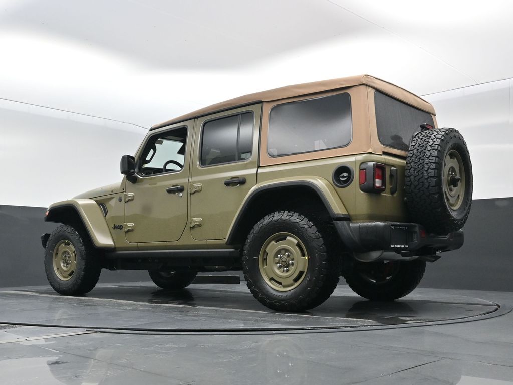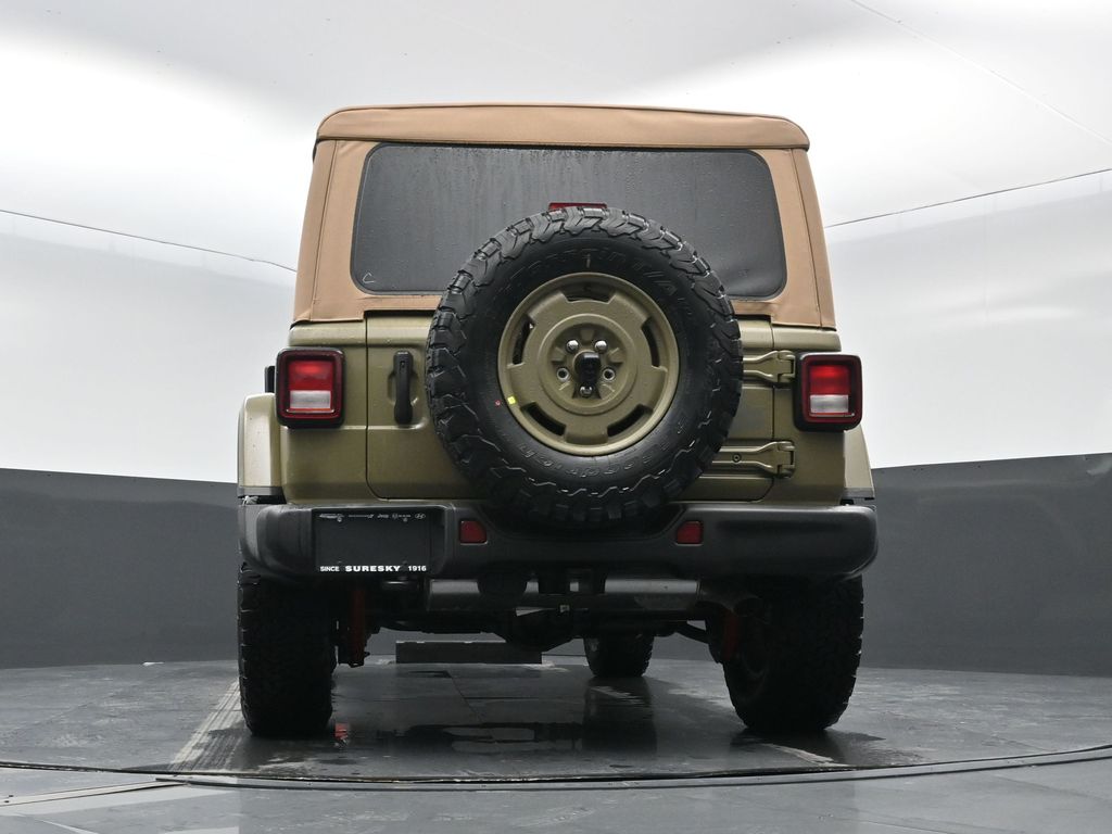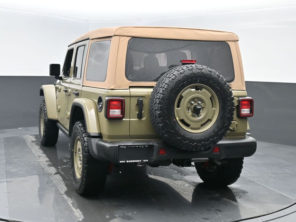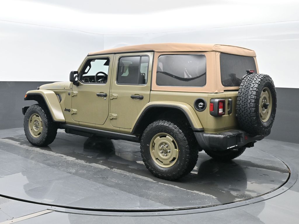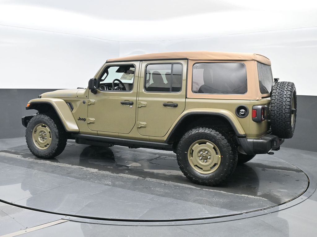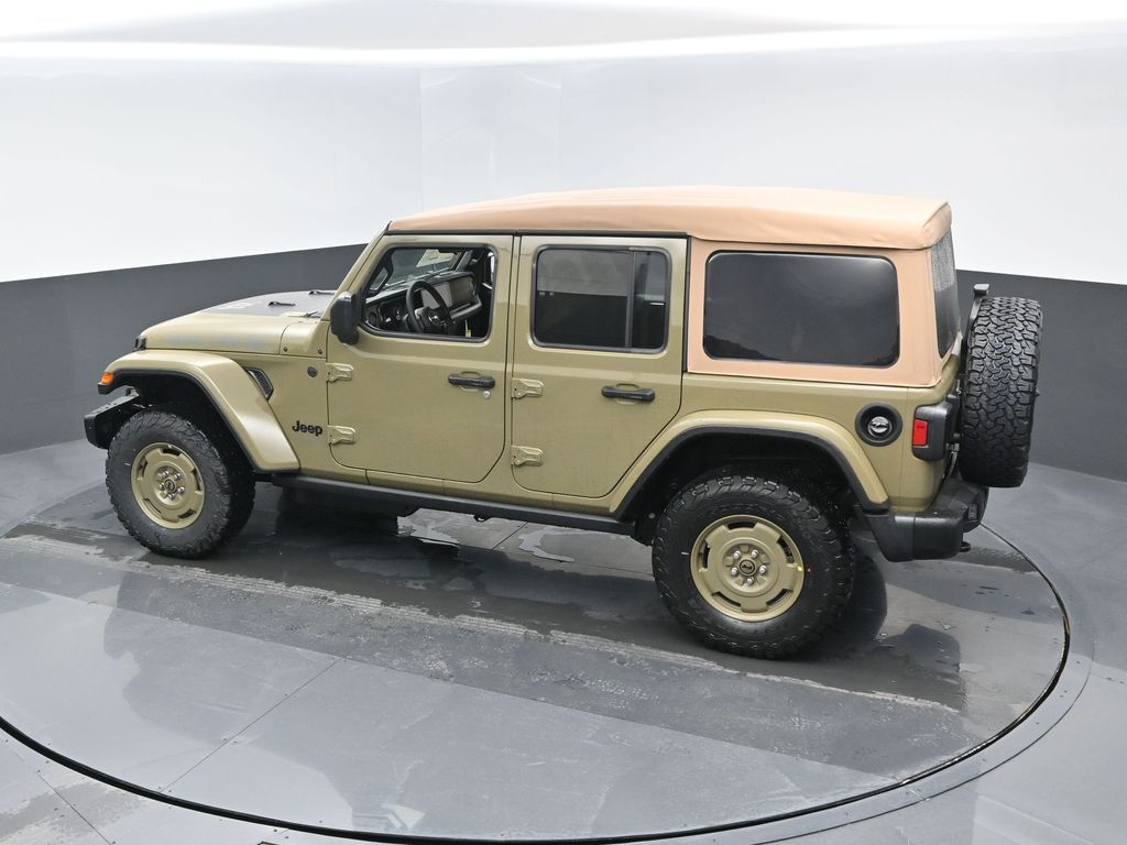 Convenience Group: Emergency/Assistance Call; 2-Door Passive Entry. Front Door Locks; Remote Start System; Cluster 7.0 TFT Color Display; Universal Garage Door Opener; Heated Front Seats; Air Conditioning W/Auto Temp Control; Heated Steering Wheel; Air Filtering. Quick Order Package 22H Willys 41: Premium Tan Sunrider Soft Top; 7 & 4 Pin Wiring Harness; Willys '41 Retro Edition Wrangler Decal; Conventional Differential Front Axle; 4WD Willys '41 Swing Gate Decal; MOPAR All-Weather Floor Mats; Dana M210 Wide HD Tube Front Axle; Body Color Grille W/Gloss Black Rings; Daytime Running Lamps LED Accents; Front LED Fog Lamps; LED Premium Reflector Headlamps; E-Locker Rear Axle; Body Color Rubicon Highline Flare; Corning Gorilla Glass; Security Alarm; 4.10 Rear Axle Ratio; Willys '41 Retro Edition Tailgate Plaque; Willys '41 Retro Shift Bezel Insert; 5. 675 lbs GVWR; Class II Receiver Hitch; Steel Front Bumper; 17 X 7.5 Fully Painted Wheels; Advanced Brake Assist; Willy's Suspension; Automatic Headlamps; Willys '41 Retro Edition Hood Decal; Deep Tint Sunscreen Windows; Off-Road Plus Mode; Willys '41 US Edition U.S. Hood Decal; Full Speed Forward Collision Warning Plus; Rock Protection Sill Rails; Willys '41 Retro Edition Buzz Model; 97 MPH Vehicle Max Speed Calibration; Cloth Low-Back Bucket Seats; Power Heated Mirrors; Auxiliary Switches; Adaptive Cruise Control W/Stop; Dana M220 Wide Rear Axle; Premium Wrapped Steering Wheel; LT285/70R17C BSW Off-Road Tires; Sun Visors W/Illuminated Vanity Mirrors; Steel Rear Bumper. Steel Power Dome Hood Package (DISC): Power Dome Dual Vented Hood. Quick Order Package 24H Willys 41: Premium Tan Sunrider Soft Top; 7 & 4 Pin Wiring Harness; Willys '41 Retro Edition Wrangler Decal; Conventional Differential Front Axle; 4WD Willys '41 Swing Gate Decal; MOPAR All-Weather Floor Mats; Dana M210 Wide HD Tube Front Axle; Body Color Grille W/Gloss Black Rings; Daytime Running Lamps LED Accents; Front LED Fog Lamps; LED Premium Reflector Headlamps; E-Locker Rear Axle; Body Color Rubicon Highline Flare; Corning Gorilla Glass; Security Alarm; 4.10 Rear Axle Ratio; Willys '41 Retro Edition Tailgate Plaque; Willys '41 Retro Shift Bezel Insert; 5. 675 lbs GVWR; Class II Receiver Hitch; Steel Front Bumper; 17 X 7.5 Fully Painted Wheels; Advanced Brake Assist; Willy's Suspension; Automatic Headlamps; Willys '41 Retro Edition Hood Decal; Deep Tint Sunscreen Windows; Off-Road Plus Mode; Willys '41 US Edition U.S. Hood Decal; Full Speed Forward Collision Warning Plus; Rock Protection Sill Rails; Willys '41 Retro Edition Buzz Model; 97 MPH Vehicle Max Speed Calibration; Cloth Low-Back Bucket Seats; Power Heated Mirrors; Auxiliary Switches; Adaptive Cruise Control W/Stop; Dana M220 Wide Rear Axle; Premium Wrapped Steering Wheel; LT285/70R17C BSW Off-Road Tires; Sun Visors W/Illuminated Vanity Mirrors; Steel Rear Bumper. 41. **Equipment listed is based on original vehicle build and subject to change. Please confirm the accuracy of the included equipment by calling the dealer prior to purchase.**