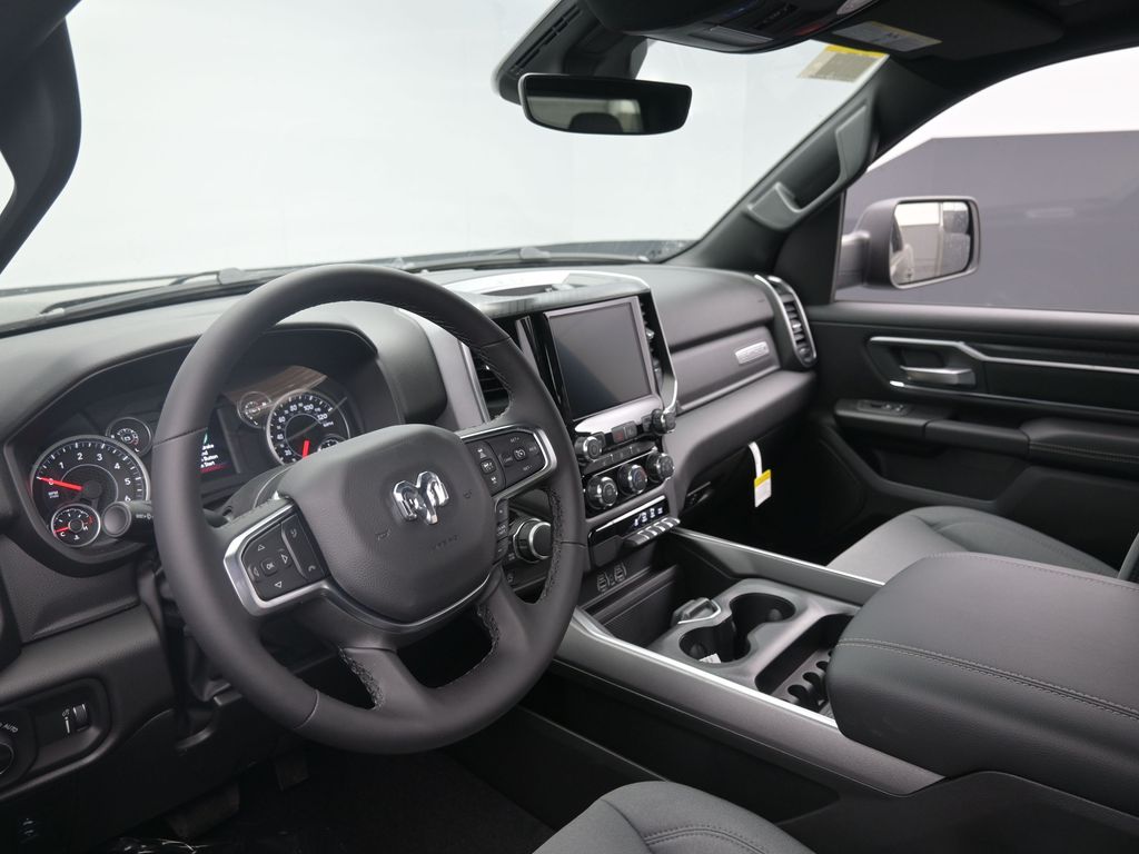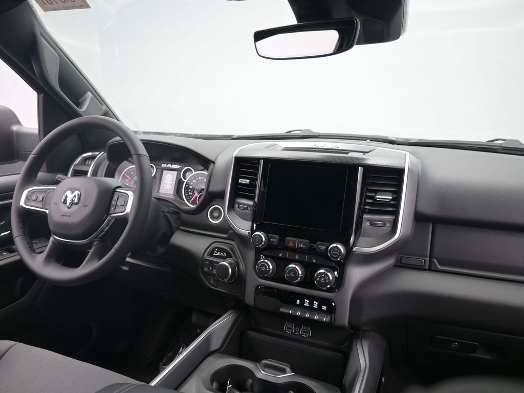 This model offers Android Auto for seamless smartphone integration. This vehicle is equipped with the latest generation of XM/Sirius Radio. The vehicle's Forward Collision Warning system alerts the driver to potential front-end collisions, enhancing safety. It has satellite radio capabilities. The vehicle offers Apple CarPlay for seamless connectivity. The rear parking assist technology on this unit will put you at ease when reversing. The system alerts you as you get closer to an obstruction. Start this Ram 1500 from inside with remote start. This model features a hands-free Bluetooth phone system. It is pure luxury with a heated steering wheel. Protect the Ram 1500 from unwanted accidents with a cutting edge backup camera system. The Ram 1500 has auto-adjust speed for safe following. When you encounter slick or muddy roads, you can engage the four wheel drive on this 1/2 ton pickup and drive with confidence. The vehicle has an elegant black exterior finish.