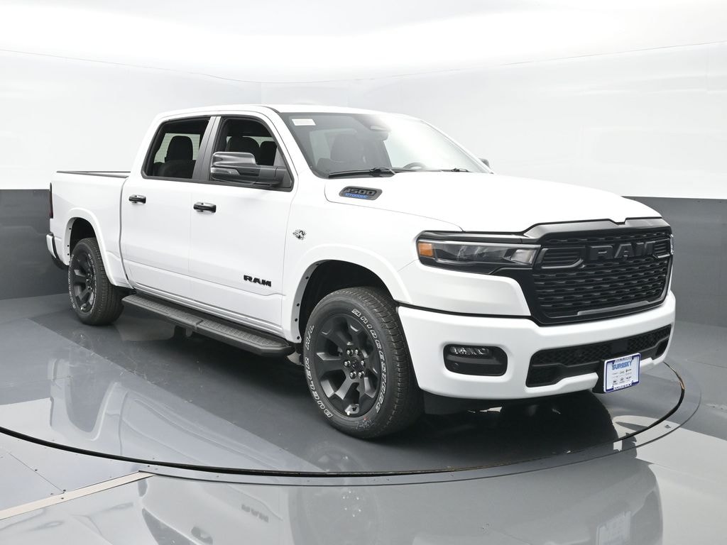 Quick Order Package 27Z Big Horn. Big Horn Level 2 Equipment Group: Google Android Auto; SiriusXM Radio Service; USB Host Flip; Power Adjustable Pedals; Leather Wrapped Steering Wheel; Integrated Voice Command with Bluetooth; 12 Touchscreen Display; Glove Box Lamp; Auto Power-Folding Mirrors; 115V Auxiliary Rear Power Outlet; Media Hub with 2 Charge Only USBs; Heated Front Seats; Security Alarm; Black Premium Power Mirrors; Apple CarPlay; Premium Overhead Console; 9 Amplified Speakers with Subwoofer; Disassociated Touchscreen Display; Secondary Active Grille Shutters; Wireless Charging Pad; Body Color Fender Flares; Remote Tailgate Release; 115V Auxiliary Power Outlet; LED Dome Lamp with On/off Switch; Universal Garage Door Opener; 2nd Row in Floor Storage Bins; Sun Visors with Illuminated Vanity Mirrors; LED Footwell Lighting; Rear Window Defroster; Integrated Center Stack Radio; Rear View Auto Dim Mirror; Rear Power Sliding Window; Connectivity - US/Canada; GPS Navigation; 4G LTE Wi-Fi Hot Spot; GPS Antenna Input; Overhead LED Lamps; Exterior Mirrors with Heating Element; Auto Dim Exterior Driver Mirror; SiriusXM with 360L; Global Telematics Box Module; Connected Travel and Traffic Services; Heated Steering Wheel; Configurable Drive Mode; 400W Inverter; HD Radio; Deluxe Cloth Bucket Seats; Uconnect 5 Navigation with 12.0 Display Radio; Exterior Mirrors with Supplemental Signals; Steering Wheel Mounted Audio Controls; Exterior Mirrors Courtesy Lamps; Air Conditioning ATC with Dual Zone Control; Cluster 7.0 TFT Color Display; Convex Wide-Angle Exterior Mirror Insert. Night Edition: 275/55R20 OWL All Season Tires; Accent Color Premium Power Mirrors; Exterior Mirrors with Supplemental Signals; Black Headlamp Bezels; Exterior Mirrors Courtesy Lamps; Grille Black Surround Black Mesh; Auto Power-Folding Mirrors; Exterior Mirrors with Heating Element; 20 X 9.0 Aluminum Painted Clad Wheels; Auto Dim Exterior Driver Mirror; Black Exterior Truck Badging; Anti-Spin Differential Rear Axle; Accent Color Door Handles; Accent Color Tailgate Handle; Black Interior Accents; Dual Exhaust with Black Tips; Body Color Front Bumper; Convex Wide-Angle Exterior Mirror Insert; Body Color Rear Bumper with Step Pads; Black Tail Lamp Bezels; RAM Grille Badge - Black; Black Painted Exterior Mirrors Caps. 9 Amplified Speakers with Subwoofer. MOPAR Black Tubular Side Steps. Anti-Spin Differential Rear Axle. 33 Gallon Fuel Tank. MOPAR Front and Rear Rubber Floor Mats. 3.92 Rear Axle Ratio. **Equipment listed is based on original vehicle build and subject to change. Please confirm the accuracy of the included equipment by calling the dealer prior to purchase.**