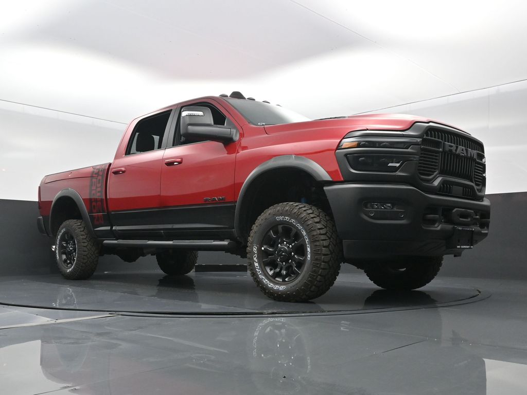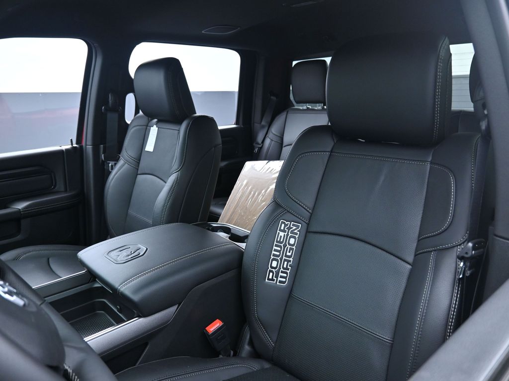 Bed Utility Group: MOPAR Spray in Bedliner; MOPAR Deployable Bed Step; LED Bed Lighting. Quick Order Package 2UP Power Wagon: Power Wagon Instrument Panel Spec Plate; RAM Articulink Suspension; 17 X 8.0 Black Painted Aluminum Wheels; 17 Steel Spare Wheel; Instrument Cluster Theme 5 - Power Wagon; Black Wheel Center Hub; Raised Ride Height; LT285/70R17D OWL AT Tires; 8. 565 lbs GVWR; Front Disconnecting Stabilizer Bar; Tru-Lok Front and Rear Axles; Goodyear Brand Tires; 4.10 Axle Ratio. Power Wagon Level 1 Equipment Group: Rain Sensitive Windshield Wipers; Power Adjustable Pedals with Memory; Body Color Door Handles; Auto Power-Folding Mirrors; Overhead LED Lamps; Exterior Mirrors with Heating Element; Auto Dim Exterior Mirror; Mirror Running Lights; Black Exterior Mirrors; Power-Adjustable Convex Aux Mirrors; Premium Overhead Console; Forward and Reverse Utility Lights; 9 Alpine Speakers with Subwoofer; Power Heated Fold Telescopic Mirrors with Memory; Exterior Mirrors with Supplemental Signals; Front Electric Winch; Sport Performance Hood; Exterior Mirrors Courtesy Lamps; Leather Trimmed Bucket Seats; Front Door Locks 2-Door Passive Entry; LED Interior Lighting; Auto High Beam Headlamp Control; LED Dome Lamp with On/off Switch; Universal Garage Door Opener; Exterior Mirrors with Memory; Power Adjust Mirrors; Power Telescoping Mirrors; MOPAR Front and Rear Rubber Floor Mats; Auto Dim Exterior Passenger Mirror; Sun Visors with Illuminated Vanity Mirrors; Auto Adjust in Reverse Exterior Mirrors. RamBox Cargo Management System: Truck Bed Cargo Divider; Vendor Painted Cargo Box; 4 Adjustable Cargo Tie-Down Hooks; LED Bed Lighting; Vendor Painted Cargo Box Tracking. Front Electric Winch. MOPAR Black Tubular Side Steps. Molten Red Pearlcoat. Molten Red Pearlcoat. MOPAR Front and Rear Rubber Floor Mats. **Equipment listed is based on original vehicle build and subject to change. Please confirm the accuracy of the included equipment by calling the dealer prior to purchase.**