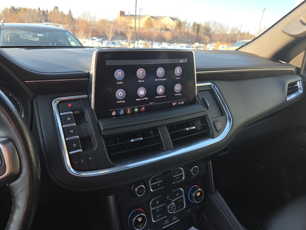 Enough room to carry all your cargo, passengers and equipment on a long road trip. Offering a ride height that is above most other vehicles, this Chevrolet Suburban has great visibility on the road. The Chevrolet Suburban has four wheel drive capabilities. This unit offers Android Auto for seamless smartphone integration. It offers Apple CarPlay for seamless connectivity. This 1/2 ton suv features a high end BOSE stereo system. Protect it from unwanted accidents with a cutting edge backup camera system. The vehicle has an elegant black exterior finish. Maintaining a stable interior temperature in this 1/2 ton suv is easy with the climate control system. Easily set your speed in this vehicle with a state of the art cruise control system. Increase or decrease velocity with the touch of a button. This vehicle has a V8, 5.3L high output engine. Enjoy the tried and true gasoline engine in the vehicle. This vehicle features a hands-free Bluetooth phone system. Keep your hands warm all winter with a heated steering wheel in it . This 2021 Chevrolet Suburban 1500's Lane Departure Warning helps keep you in your lane. This Chevrolet Suburban stays safely in its lane with Lane Keep Assist. The leather seats in this 1/2 ton suv are a must for buyers looking for comfort, durability, and style. With the adjustable lumbar support in this 1/2 ton suv your back will love you. This vehicle is outfitted with an OnStar communication system. Enjoy the convenience of the power liftgate on the Chevrolet Suburban. Never get into a cold vehicle again with the remote start feature on this 1/2 ton suv. with XM/Sirus Satellite Radio you are no longer restricted by poor quality local radio stations while driving the Chevrolet Suburban. Anywhere on the planet, you will have hundreds of digital stations to choose from.