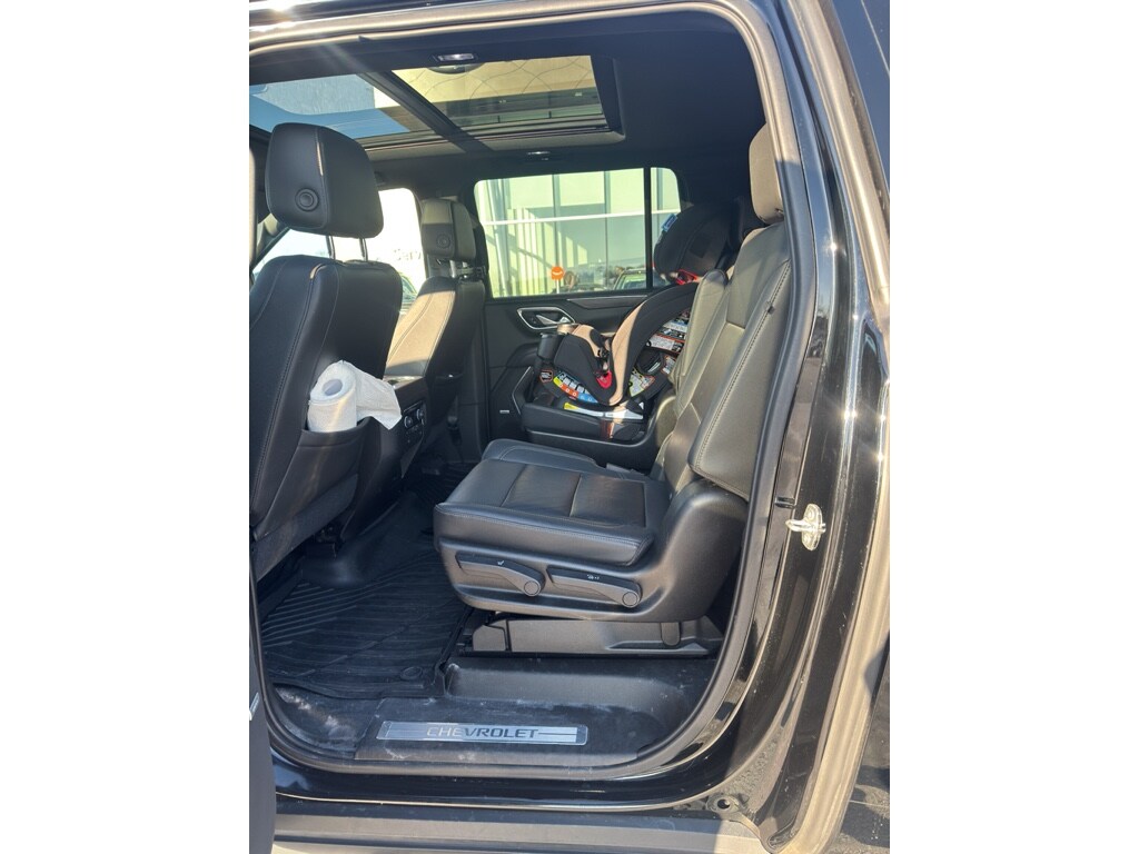 Driver Alert Package: Lane Keep Assist with Lane Departure Warning; Rear Cross Traffic Alert; Front and Rear Park Assist; Lane Change Alert with Side Blind Zone Alert Luxury Package: HD Surround Vision; Heated 2nd Row Outboard Seats; 2nd Row Power Release 60/40 Split-Folding Bench Seat; Memory Settings; Power Tilt and Telescopic Steering Column; Rear Pedestrian Alert; Automatic Heated Steering Wheel; 3rd Row 60/40 Power-Folding Split-Bench; Outside Heated Power-Adjustable Mirrors Preferred Equipment Group 2Z7: Bright Front and Rear Door Sill Plates; Leather Seating Surfaces; Remote Start; Hill Descent Control; 20 X 9 Machined Aluminum Wheels; Floor Console with Storage Area; Black Tubular Assist Steps; LED Daytime Running Lamps; Driver and Front Outboard Passenger Airbags; 10-Way Power Driver and Passenger Seat Adjusters; Memory Settings For Driver; Heated Driver and Front Passenger Seats; Front Bucket Seats; Universal Home Remote; Color-Keyed Carpeting Floor Covering; Front Skid Plate; Front High-Approach Angle Fascia; Hands-Free Rear Power Programmable Liftgate; Bose 9-Speaker Stereo Audio System Feature; 2-Speed Active Electronic Autotrac Transfer Case; 1st and 2nd Row Color-Keyed Carpeted Floor Mats; Chevrolet Infotainment 3 Plus System Radio; HD Radio; Red Recovery Hooks; SiriusXM Radio with 360L; Leather-Wrapped Steering Wheel; 275/60R20SL AT BW Tires; Infotainment Display; Auto-Dimming Inside Rearview Mirror; 2 USB Data Ports Dual-Pane Power Panoramic Sunroof Power Release 2nd Row Bucket Seats **Equipment listed is based on original vehicle build and subject to change. Please confirm the accuracy of the included equipment by calling the dealer prior to purchase.**