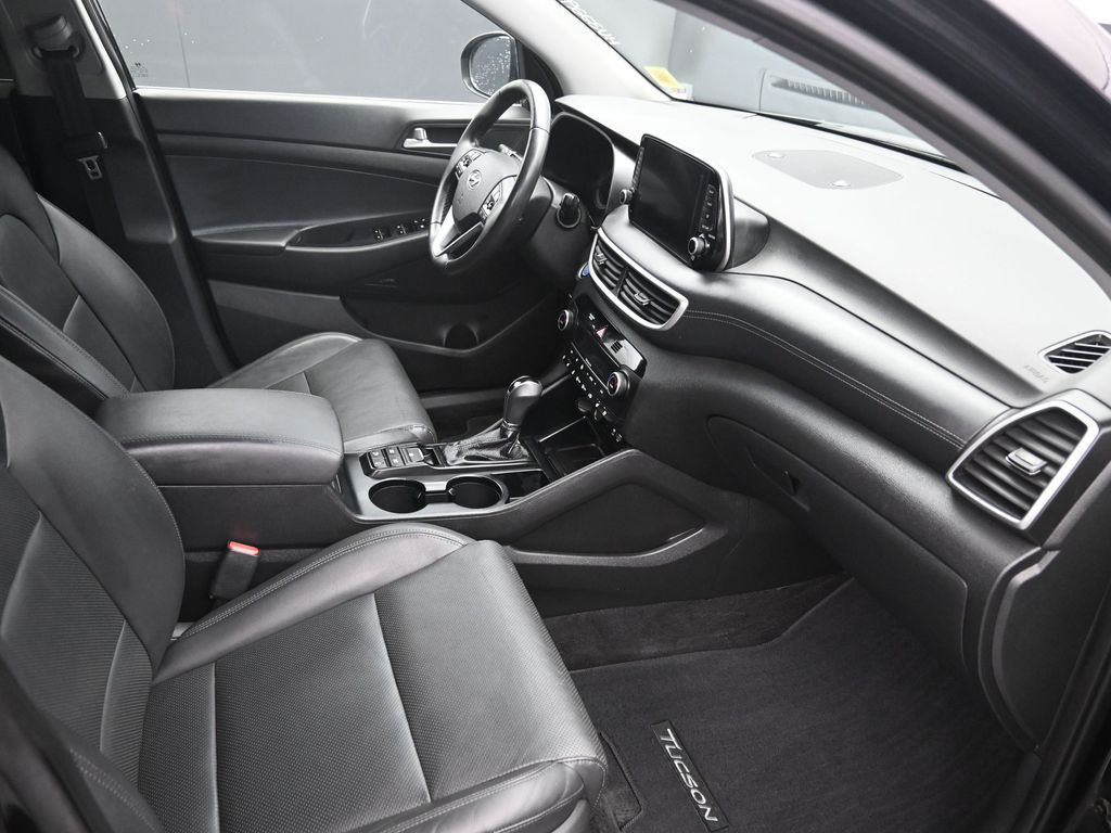 This vehicle has four wheel drive capabilities. The vehicle offers Android Auto for seamless smartphone integration. Apple CarPlay: Seamless smartphone integration for it - stay connected and entertained on the go! This unit keeps you comfortable with Auto Climate. It has an automatic transmission. Protect it from unwanted accidents with a cutting edge backup camera system. This Hyundai Tucson is painted with a sleek and sophisticated black color. Set the temperature exactly where you are most comfortable in this Hyundai Tucson. The fan speed and temperature will automatically adjust to maintain your preferred zone climate. Easily set your speed in it with a state of the art cruise control system. Increase or decrease velocity with the touch of a button. Electronic Stability Control is one of many advanced safety features on this vehicle. The vehicle has a 4 Cyl, 2.4L high output engine. Enjoy the tried and true gasoline engine in this 2021 Hyundai Tucson . This 2021 Hyundai Tucson features a hands-free Bluetooth phone system. Keep your hands warm all winter with a heated steering wheel in the Hyundai Tucson . Quickly unlock this model with keyless entry. The leather seats in the vehicle are a must for buyers looking for comfort, durability, and style. With the adjustable lumbar support in this model your back will love you. This mid-sized SUV is perfect for your next adventure. You'll never again be lost in a crowded city or a country region with the navigation system on it. Enjoy the convenience of the power liftgate on the vehicle. Never get into a cold vehicle again with the remote start feature on it.