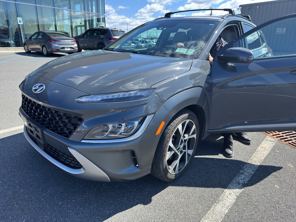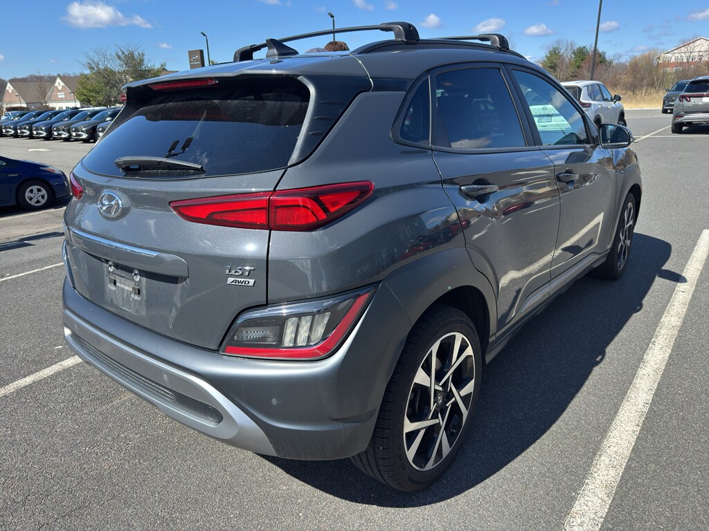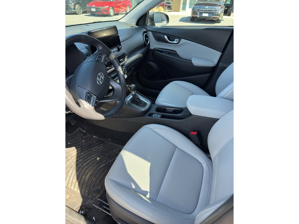 This 2023 Hyundai Kona has four wheel drive capabilities. The vehicle offers Android Auto for seamless smartphone integration. This small suv offers Apple CarPlay for seamless connectivity. The vehicle offers Automatic Climate Control for personalized comfort. The high efficiency automatic transmission shifts smoothly and allows you to relax while driving. See what's behind you with the back up camera on this 2023 Hyundai Kona . Good News! This certified CARFAX 1-owner vehicle has only had one owner before you. Maintaining a stable interior temperature in this vehicle is easy with the climate control system. This 2023 Hyundai Kona features cruise control for long trips. Electronic Stability Control is one of many advanced safety features on this model. This unit has a 4 Cyl, 1.6L high output engine. This model is equipped with a gasoline engine. This 2023 Hyundai Kona projects refinement with a racy metallic gray exterior. Bluetooth technology is built into this Hyundai Kona, keeping your hands on the steering wheel and your focus on the road. Quickly unlock it with keyless entry. This model stays safely in its lane with Lane Keep Assist. The leather seats in this vehicle are a must for buyers looking for comfort, durability, and style. With the adjustable lumbar support in this Hyundai Kona your back will love you. The installed navigation system will keep you on the right path. Never get into a cold vehicle again with the remote start feature on the vehicle. Expand the cargo capabilities of this 2023 Hyundai Kona by using the installed roof rack. This small SUV will zip through traffic.