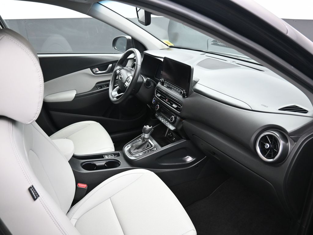 Bluetooth technology is built into this model, keeping your hands on the steering wheel and your focus on the road. The installed navigation system will keep you on the right path. Lane Keep Assist in it helps maintain safe driving by gently steering to stay within the lane. This vehicle comes equipped with Android Auto for seamless smartphone integration on the road. The leather seats in it are a must for buyers looking for comfort, durability, and style. Protect this 2023 Hyundai Kona from unwanted accidents with a cutting edge backup camera system. Start the Hyundai Kona from inside with remote start. The Hyundai Kona offers Automatic Climate Control for personalized comfort. This vehicle is a certified CARFAX 1-owner. This Hyundai Kona offers Apple CarPlay for seamless connectivity. Quickly unlock this vehicle with keyless entry. Set the temperature exactly where you are most comfortable in the Hyundai Kona. The fan speed and temperature will automatically adjust to maintain your preferred zone climate.