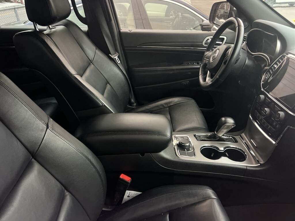 It has four wheel drive capabilities. It offers Android Auto for seamless smartphone integration. It offers Apple CarPlay for seamless connectivity. It keeps you comfortable with Auto Climate. See what's behind you with the back up camera on this vehicle. The Jeep Grand Cherokee enhances safety with a blind spot monitor, alerting drivers to potential dangers in adjacent lanes. The Jeep Grand Cherokee shines with an exquisite blue finish. Maintaining a stable interior temperature in this vehicle is easy with the climate control system. This vehicle features cruise control for long trips. Electronic Stability Control is one of many advanced safety features on this 2021 Jeep Grand Cherokee . This mid-size suv has a V6, 3.6L high output engine. Enjoy the tried and true gasoline engine in this 2021 Jeep Grand Cherokee . This Jeep Grand Cherokee features a hands-free Bluetooth phone system. Keep your hands warm all winter with a heated steering wheel in this 2021 Jeep Grand Cherokee . With the keyless entry system on it you can pop the trunk without dropping your bags from the store. The leather seats in this model are a must for buyers looking for comfort, durability, and style. Help alleviate lower back pain with the driver seat lumbar support in this model. This mid-sized SUV is perfect for your next adventure. The installed navigation system will keep you on the right path. Load groceries and much more with ease into this model thanks to the power liftgate. The rear parking assist technology on this vehicle will put you at ease when reversing. The system alerts you as you get closer to an obstruction. Start it from inside with remote start. The vehicle is equipped with the latest generation of XM/Sirius Radio.