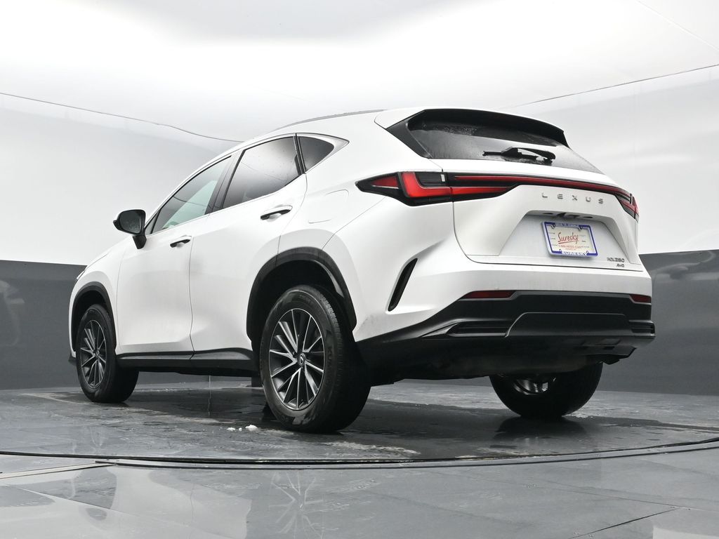 Enough room to carry all your cargo, passengers and equipment on a long road trip. Offering a ride height that is above most other vehicles, this 1/2 ton suv has great visibility on the road. Conquer any rainy, snowy, or icy road conditions this winter with the all wheel drive system on the vehicle. It comes equipped with Android Auto for seamless smartphone integration on the road. The vehicle offers Apple CarPlay for seamless connectivity. Protect this Lexus NX 250 from unwanted accidents with a cutting edge backup camera system. This Lexus NX 250's blind spot monitor enhances safety. This vehicle is a certified CARFAX 1-owner. It has a clean CARFAX vehicle history report. Maintaining a stable interior temperature in this unit is easy with the climate control system. Easily set your speed in this Lexus NX 250 with a state of the art cruise control system. Increase or decrease velocity with the touch of a button. The Electronic Stability Control will keep you on your intended path. This vehicle has a 4 Cyl, 2.5L high output engine. Enjoy the tried and true gasoline engine in the Lexus NX 250. Bluetooth technology is built into this model, keeping your hands on the steering wheel and your focus on the road. This 2024 Lexus NX 250 is pure luxury with a heated steering wheel. The leather seats in this model are a must for buyers looking for comfort, durability, and style. With the adjustable lumbar support in the vehicle your back will love you. You'll never again be lost in a crowded city or a country region with the navigation system on it. Never get into a cold vehicle again with the remote start feature on this model. This 2024 Lexus NX 250 shines with clean polished lines coated with an elegant white finish.