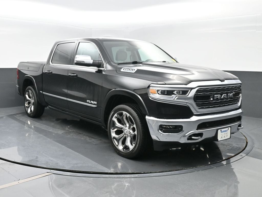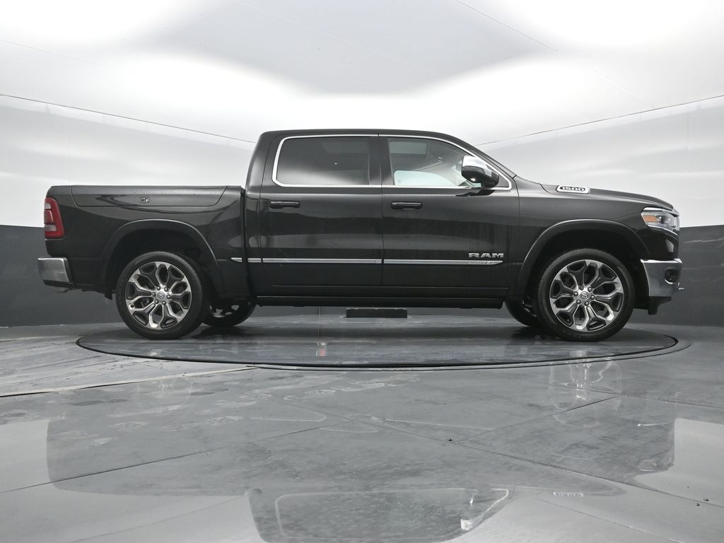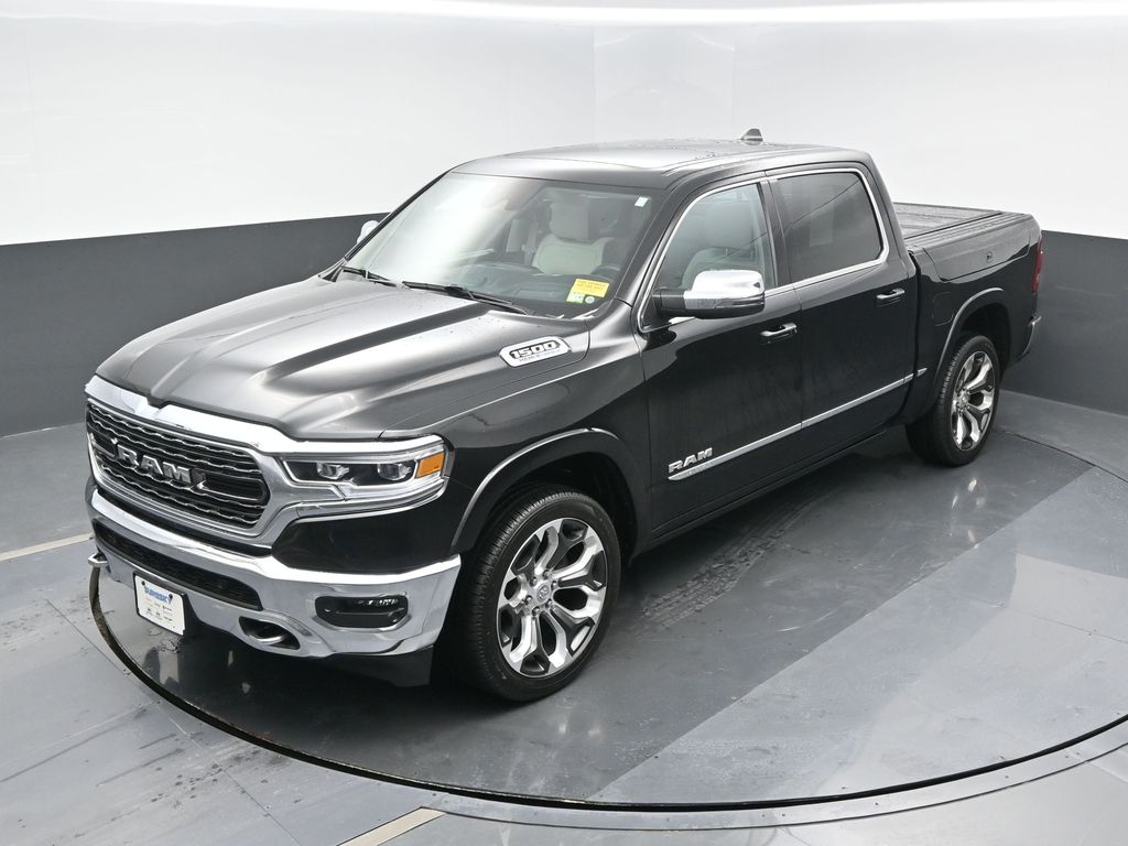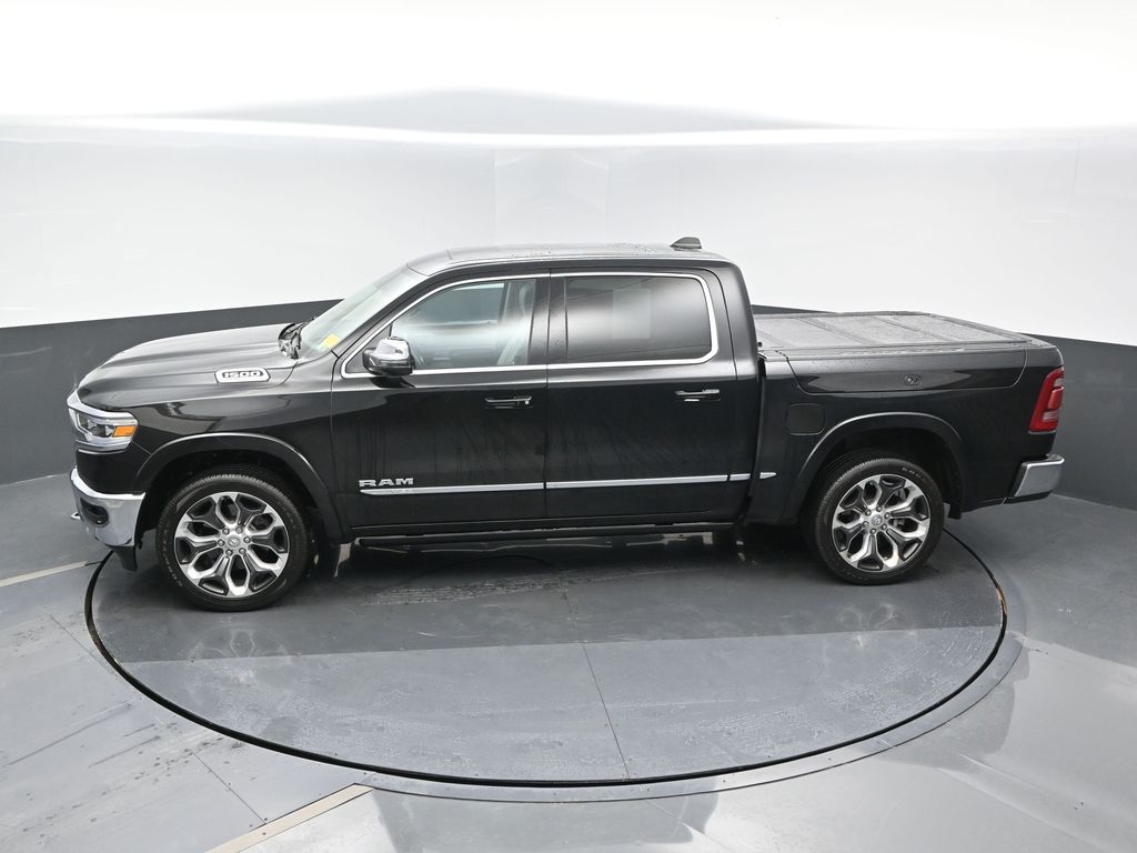 Elite Package: Multi-Function Tailgate; Rotary Shifter-Jeweled; Truck Bed Cargo Divider; Suede Headliner; Premium Quilted Leather Bucket Seats; MOPAR 4 Adjustable Cargo Tie-Down Hooks; MOPAR Deployable Bed Step Center Mount; MOPAR Bright Pedal Kit. Quick Order Package 27M Limited. Limited Level 1 Equipment Group: Adaptive Cruise Control with Stop and Go; Surround View Camera System; Parallel and Perp Park Assist with Stop; LED CHMSL Lamp; ParkSense Front/rear Park Assist with Stop; Wireless Charging Pad; Pick-Up Box Lighting; Pedestrian Emergency Braking; MOPAR Spray in Bedliner; Harman/kardon 19 Speaker Premium Sound; Power Running Boards; Head Up Display; Digital Rearview Mirror; Lane Keep Assist. 22 X 9 Polish/painted Wheels with Inserts. Dual-Pane Panoramic Sunroof. Multi-Function Tailgate. RamBox Cargo Management System. Trailer Brake Control. Diamond Black Crystal PC. **Equipment listed is based on original vehicle build and subject to change. Please confirm the accuracy of the included equipment by calling the dealer prior to purchase.**