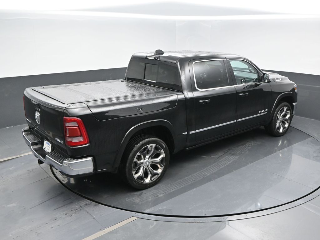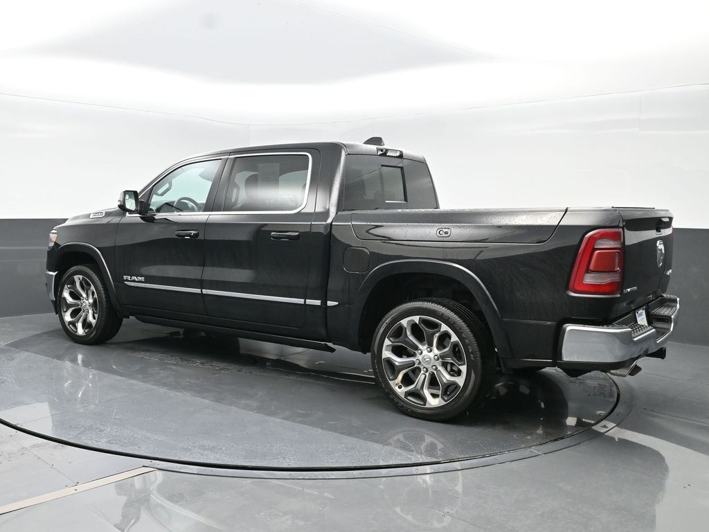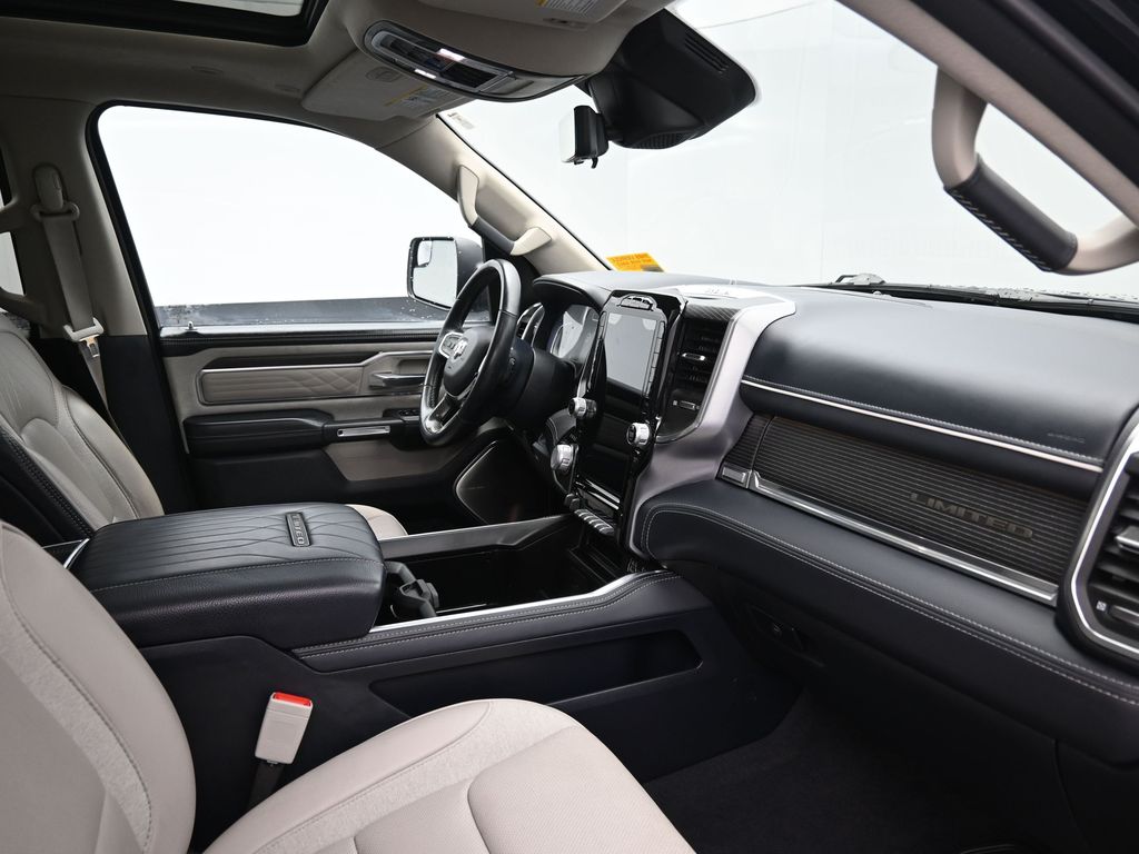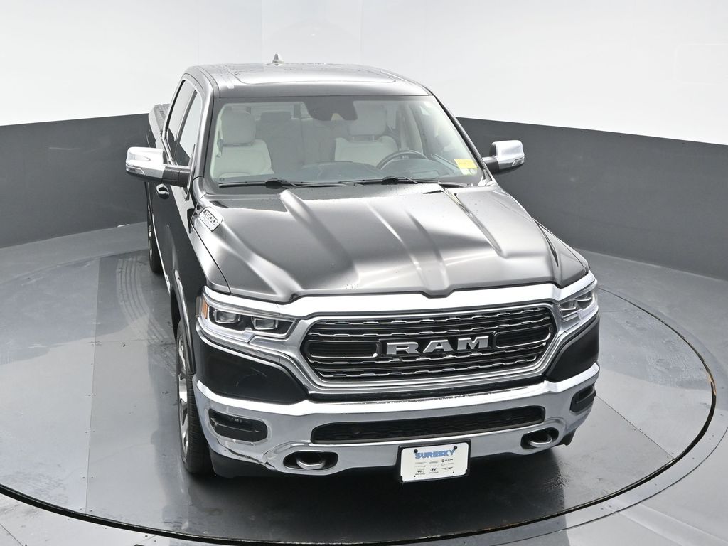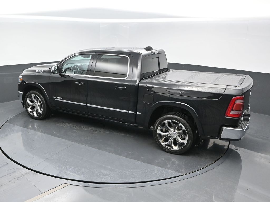 Elite Package: Multi-Function Tailgate; Rotary Shifter-Jeweled; Truck Bed Cargo Divider; Suede Headliner; Premium Quilted Leather Bucket Seats; MOPAR 4 Adjustable Cargo Tie-Down Hooks; MOPAR Deployable Bed Step Center Mount; MOPAR Bright Pedal Kit. Quick Order Package 27M Limited. Limited Level 1 Equipment Group: Adaptive Cruise Control with Stop and Go; Surround View Camera System; Parallel and Perp Park Assist with Stop; LED CHMSL Lamp; ParkSense Front/rear Park Assist with Stop; Wireless Charging Pad; Pick-Up Box Lighting; Pedestrian Emergency Braking; MOPAR Spray in Bedliner; Harman/kardon 19 Speaker Premium Sound; Power Running Boards; Head Up Display; Digital Rearview Mirror; Lane Keep Assist. 22 X 9 Polish/painted Wheels with Inserts. Dual-Pane Panoramic Sunroof. Multi-Function Tailgate. RamBox Cargo Management System. Trailer Brake Control. Diamond Black Crystal PC. **Equipment listed is based on original vehicle build and subject to change. Please confirm the accuracy of the included equipment by calling the dealer prior to purchase.**