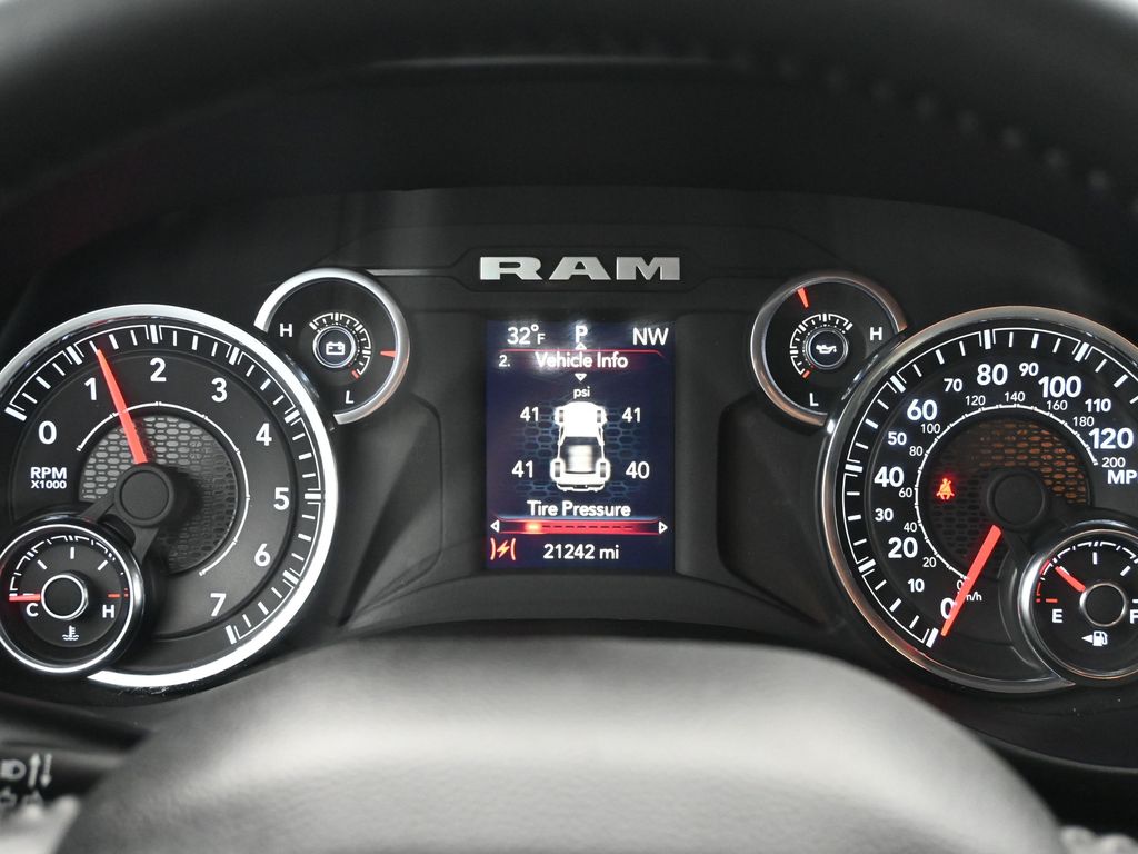 Quick Order Package 27Z Big Horn. Big Horn Level 1 Equipment Group: Google Android Auto; SiriusXM Radio Service; Bluetooth Handsfree Phone and Audio; USB Host Flip; Rear Window Defroster; Rear View Auto Dim Mirror; For Details. Visit DriveUconnect.com; For More Info. Call 800-643-2112; Rear Power Sliding Window; Rear Dome with On/off Switch Lamp; Front Fog Lamps; Connectivity - US/Canada; Glove Box Lamp; 4G LTE Wi-Fi Hot Spot; Exterior Mirrors with Heating Element; Auto Dim Exterior Driver Mirror; Global Telematics Box Module; Heated Front Seats; Uconnect 5 W Radio with 8.4 Display; Heated Steering Wheel; Class IV Receiver Hitch; Black Premium Power Mirrors; Apple CarPlay; Big Horn Instrument Panel Badge; SiriusXM Satellite Radio; Exterior Mirrors with Supplemental Signals; Exterior Mirrors Courtesy Lamps; Passenger Sun Visor with Illuminated Mirror; Electric Shift on Demand Transfer Case; Power-Folding Mirrors; Convex Wide-Angle Mirror Insert. Quick Order Package 23Z Big Horn. 20 X 9 Aluminum Chrome Clad Wheels. Deluxe Cloth Bucket Seats. Remote Start System. MOPAR Front and Rear Rubber Floor Mats. **Equipment listed is based on original vehicle build and subject to change. Please confirm the accuracy of the included equipment by calling the dealer prior to purchase.**