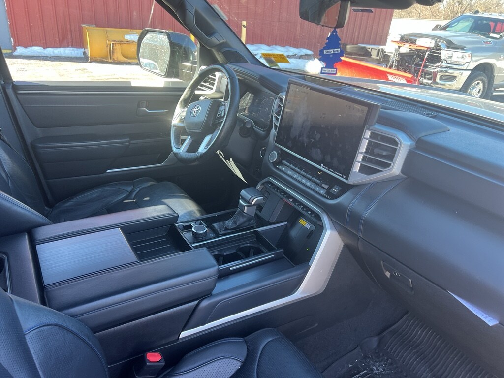Big enough to tow or haul, the Toyota Tundra has the space, power and durability for anyone. This 1/2 ton pickup has four wheel drive capabilities. This 1/2 ton pickup offers Android Auto for seamless smartphone integration. Apple CarPlay: Seamless smartphone integration for this vehicle - stay connected and entertained on the go! This model has an automatic transmission. Protect this 2022 Toyota Tundra from unwanted accidents with a cutting edge backup camera system. This 1/2 ton pickup enhances safety with a blind spot monitor, alerting drivers to potential dangers in adjacent lanes. Our dealership has already run the CARFAX report and it is clean. A clean CARFAX is a great asset for resale value in the future. Set the temperature exactly where you are most comfortable in this 1/2 ton pickup. The fan speed and temperature will automatically adjust to maintain your preferred zone climate. This unit warns of approaching vehicles with Cross-Traffic Alert. This unit features cruise control for long trips. The Toyota Tundra has a V6, 3.5L (3445 cc) high output engine. This Toyota Tundra is equipped with a gasoline engine. This 2022 Toyota Tundra emanates grace with its stylish gray exterior. This vehicle features a hands-free Bluetooth phone system. This vehicle is pure luxury with a heated steering wheel. The leather seats in this vehicle are a must for buyers looking for comfort, durability, and style. Help alleviate lower back pain with the driver seat lumbar support in this Toyota Tundra. You'll never again be lost in a crowded city or a country region with the navigation system on it. Start this Toyota Tundra from inside with remote start. This unit comes with running boards already installed.